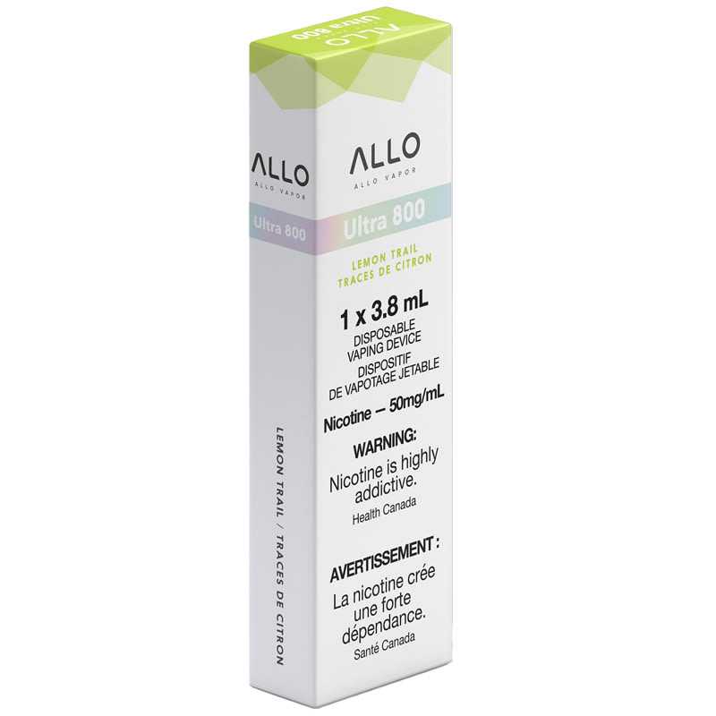 (Read more)The Lemon Trail Allo Ultra 800 Disposable Vape is a convenient, disposable, pocket friendly vape kit, packed with a fresh blend of citrus. A sweet, chilly, and refreshing vape.