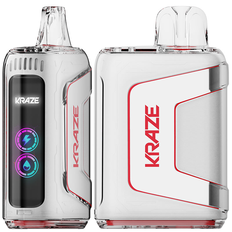 La saveur Strawberry Ice La vape jetable Kraze HD 7K délivre jusqu'à 7000 bouffées de vapeur avec un flux d'air réglable en utilisant 13 mld'e-liquide aux sels de nicotine et une résistance en mesh alimentée par une batterie rechargeable 650 mAh, avec un grand écran TFT qui affiche clairement la charge de la batterie et les niveaux d'e-liquide.