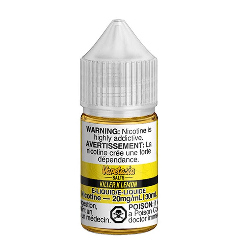 (Read more)Killer K Lemon Salts by Vapetasia (aka Killer Kustard Lemon Salts) blends sun ripened citrus with the rich vanilla "kustard" flavour of the original Killer K Salts, creating a smooth and tangy nicotine salt¹ e-liquid gushing with flavourful satisfaction. A tart twist on a classic decadent dessert.