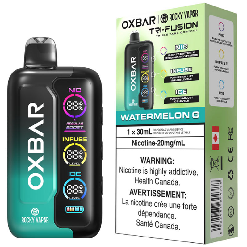 Oxbar x Rocky Vapor Tri Fusion Disposable Vape: Watermelon G (30mL)